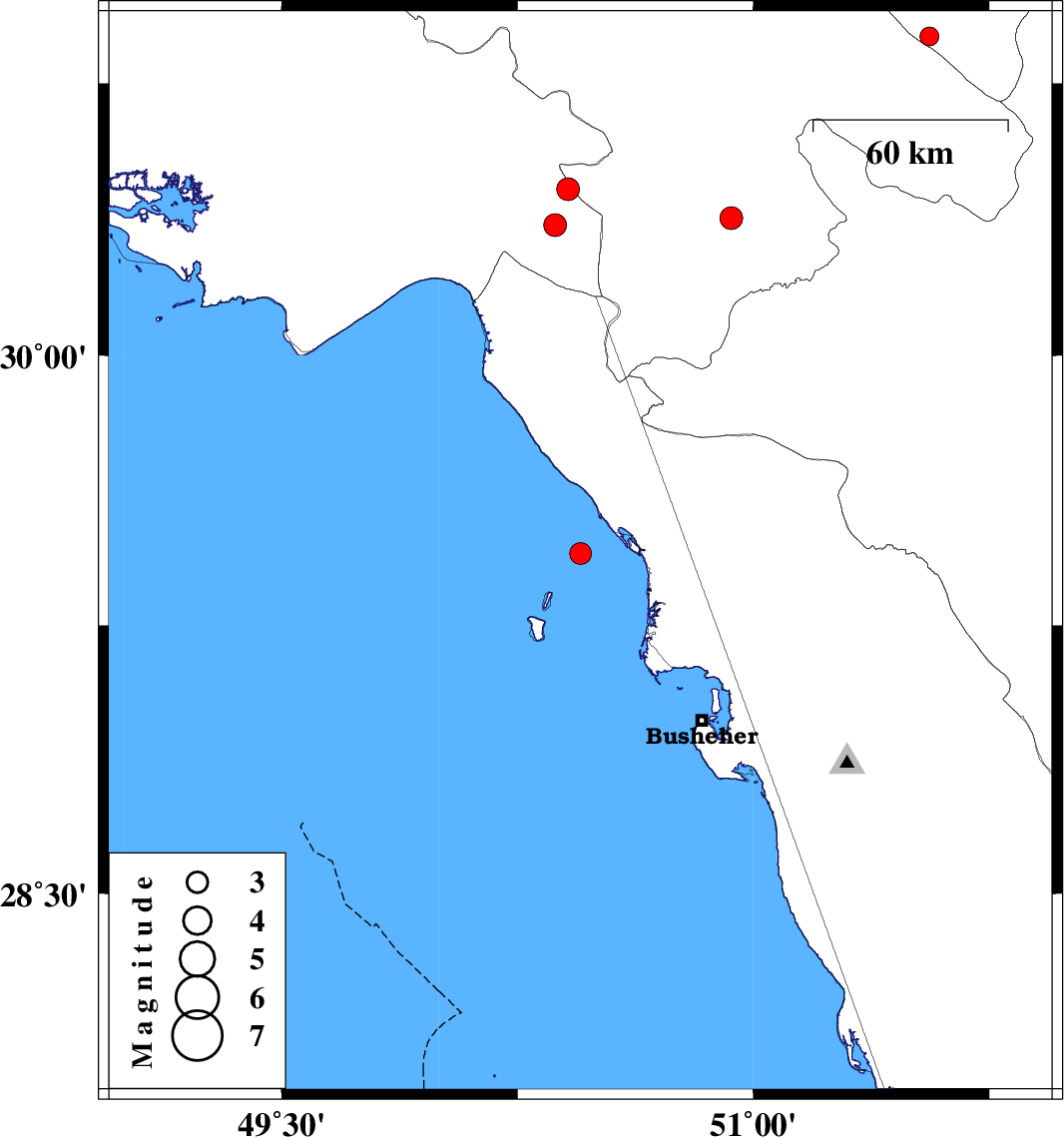 | 2013/04/03 | 15:35:12.6 | 20:05:12.6 | 29.45 | 50.45 | 18 | ML3.1 | Persian Gulf, 15 km South of Bandar-e genaveh | ||