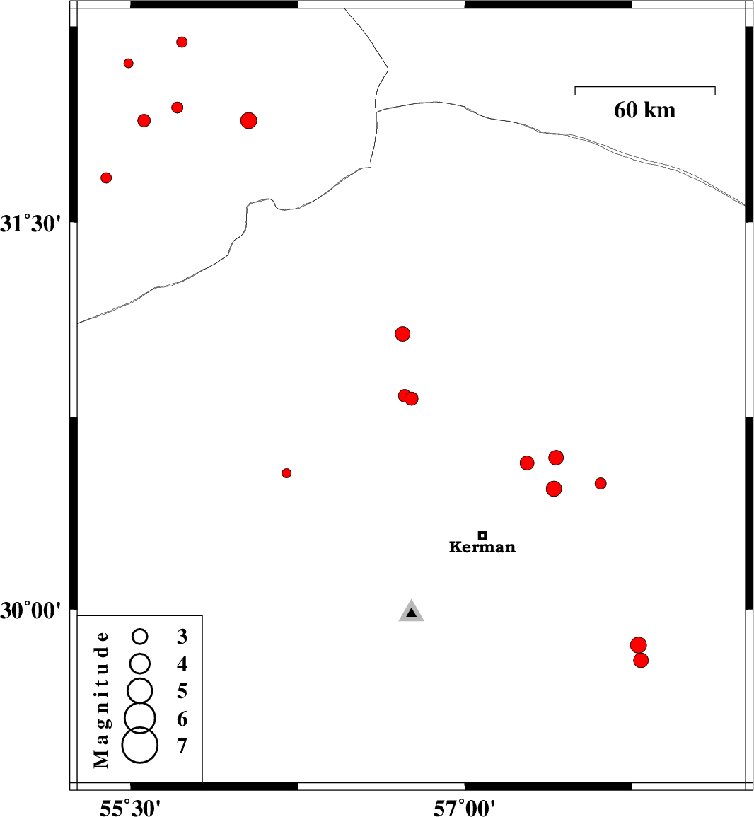 | 2013/03/26 | 12:30:42.0 | 17:00:42.0 | 29.86 | 57.78 | 14 | ML3.3 | Kerman Province, 83 km South-East of Kerman | ||