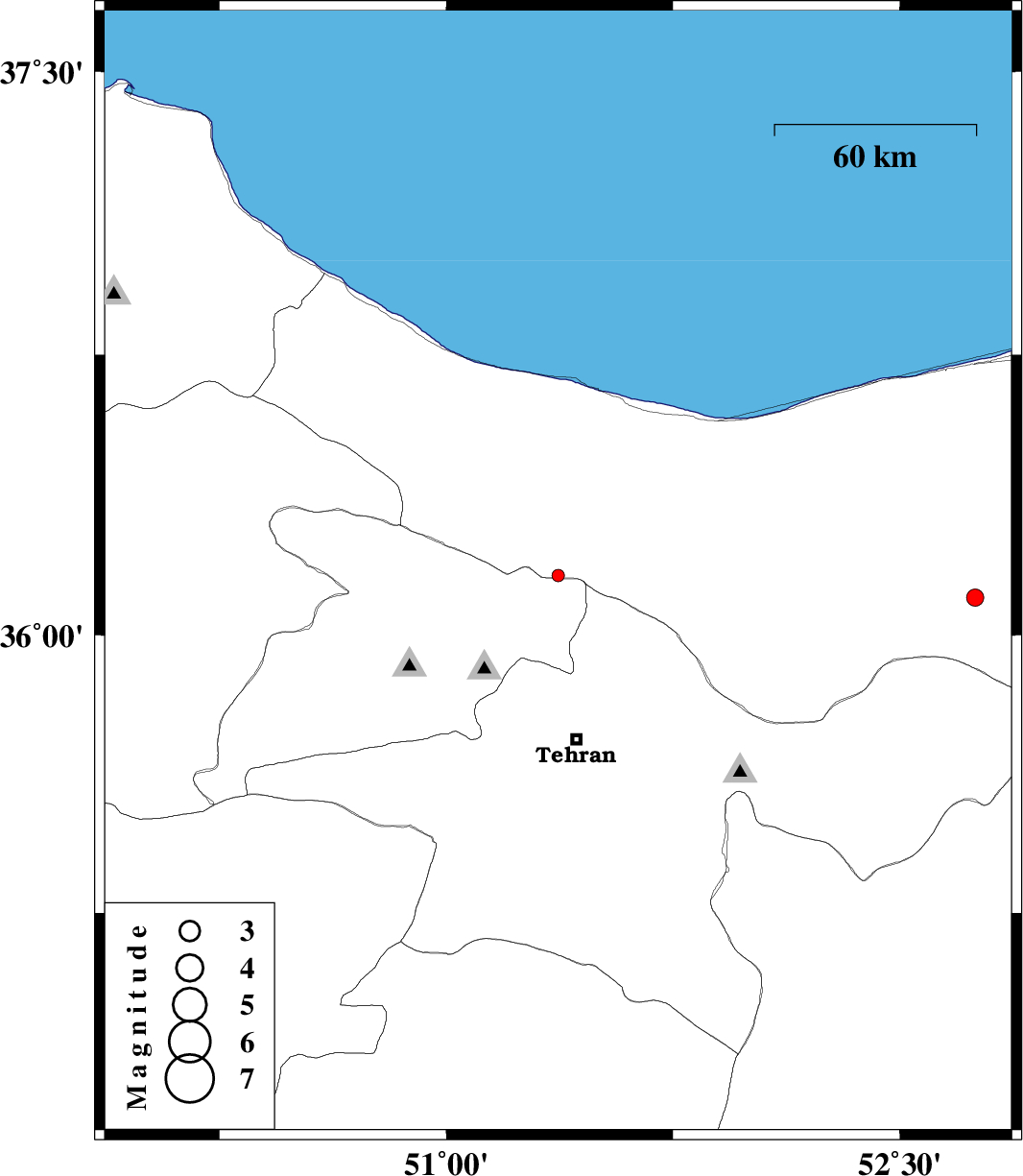 | 2013/04/06 | 20:07:58.1 | 00:37:58.1 | 36.16 | 51.37 | 18 | ML1.9 | Mazandaran Province, 41 km North of Tajrish | ||