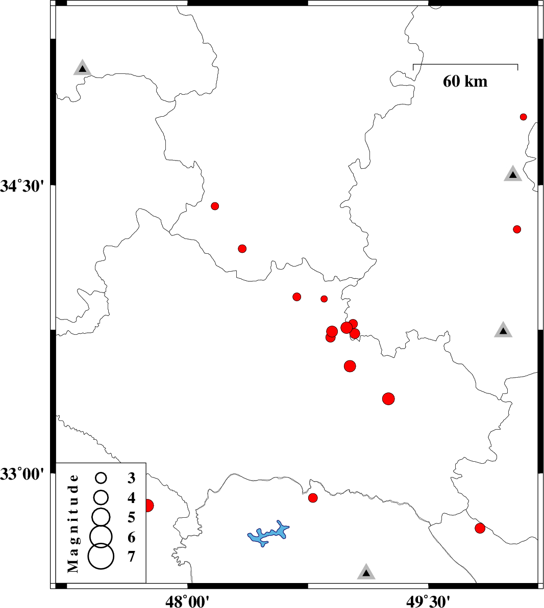 | 2013/04/07 | 12:35:02.4 | 17:05:02.4 | 33.76 | 48.99 | 14 | ML3.2 | Lorestan Province, 26 km South-East of Borujerd | ||