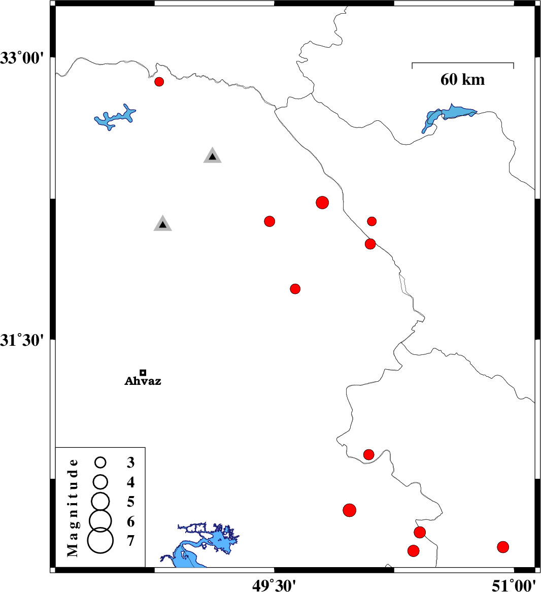 | 2013/04/05 | 20:01:30.1 | 00:31:30.1 | 30.88 | 50.09 | 15 | ML3 | Kohkiluieh va boyerahmad Province, 35 km North-West of Behbahan | ||