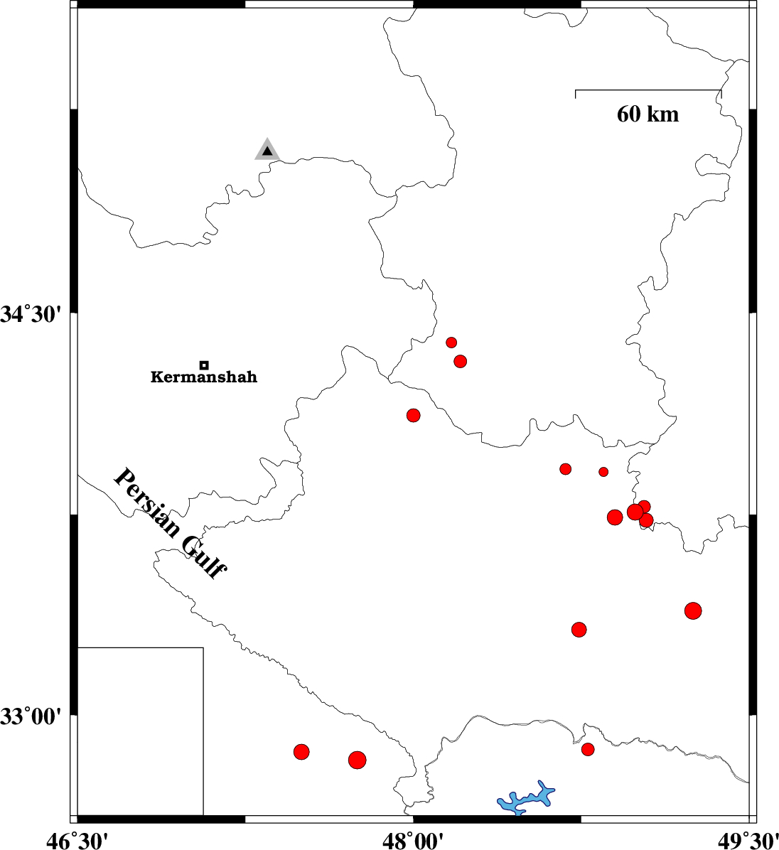 | 2013/04/07 | 12:35:02.4 | 17:05:02.4 | 33.76 | 48.99 | 14 | ML3.2 | Lorestan Province, 26 km South-East of Borujerd | ||