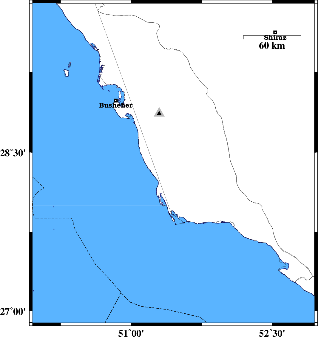 | 2013/04/19 | 18:32:57.5 | 23:02:57.5 | 28.42 | 51.49 | 29 | ML4 | Bushehr Province, 28 km South-East of Khormog | ||