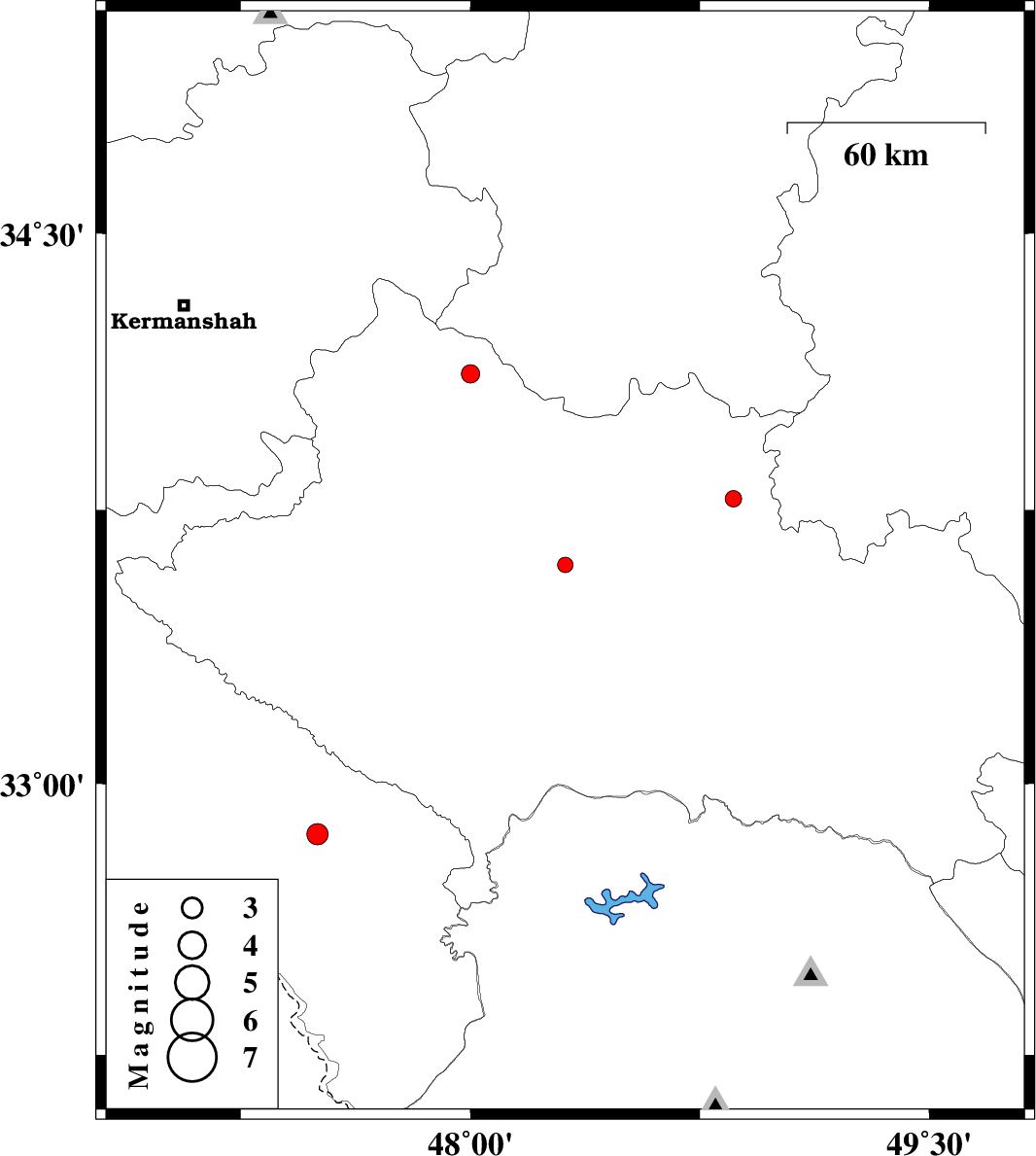 | 2013/04/18 | 08:32:21.9 | 13:02:21.9 | 32.86 | 47.5 | 14 | ML3.1 | Ilam Province, 9 km Abdanan |