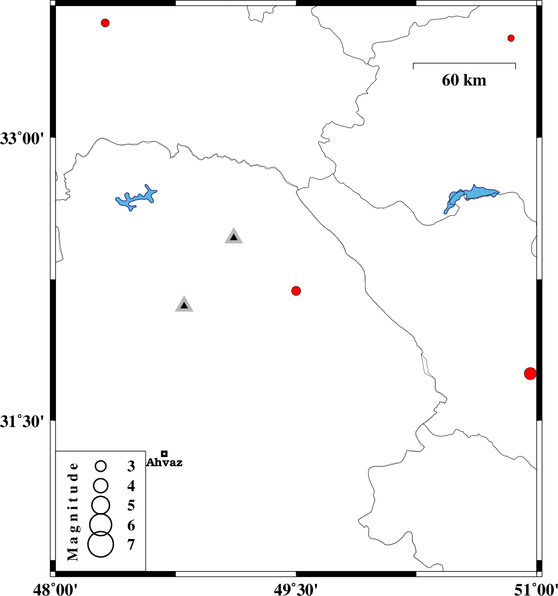 | 2013/04/22 | 00:02:19.8 | 04:32:19.8 | 32.19 | 49.5 | 18 | ML2.5 | Khoozestan Province, 34 km North-East of Masjed Soleyman | ||