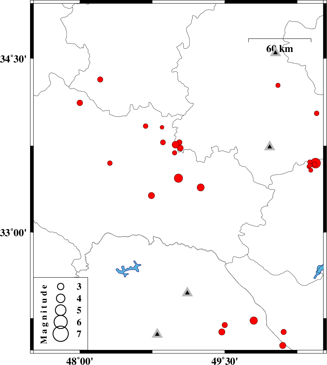 | 2013/04/07 | 12:35:02.4 | 17:05:02.4 | 33.76 | 48.99 | 14 | ML3.2 | Lorestan Province, 26 km South-East of Borujerd | ||