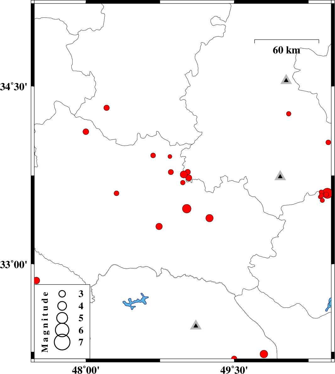 | 2013/04/07 | 12:35:02.4 | 17:05:02.4 | 33.76 | 48.99 | 14 | ML3.2 | Lorestan Province, 26 km South-East of Borujerd | ||