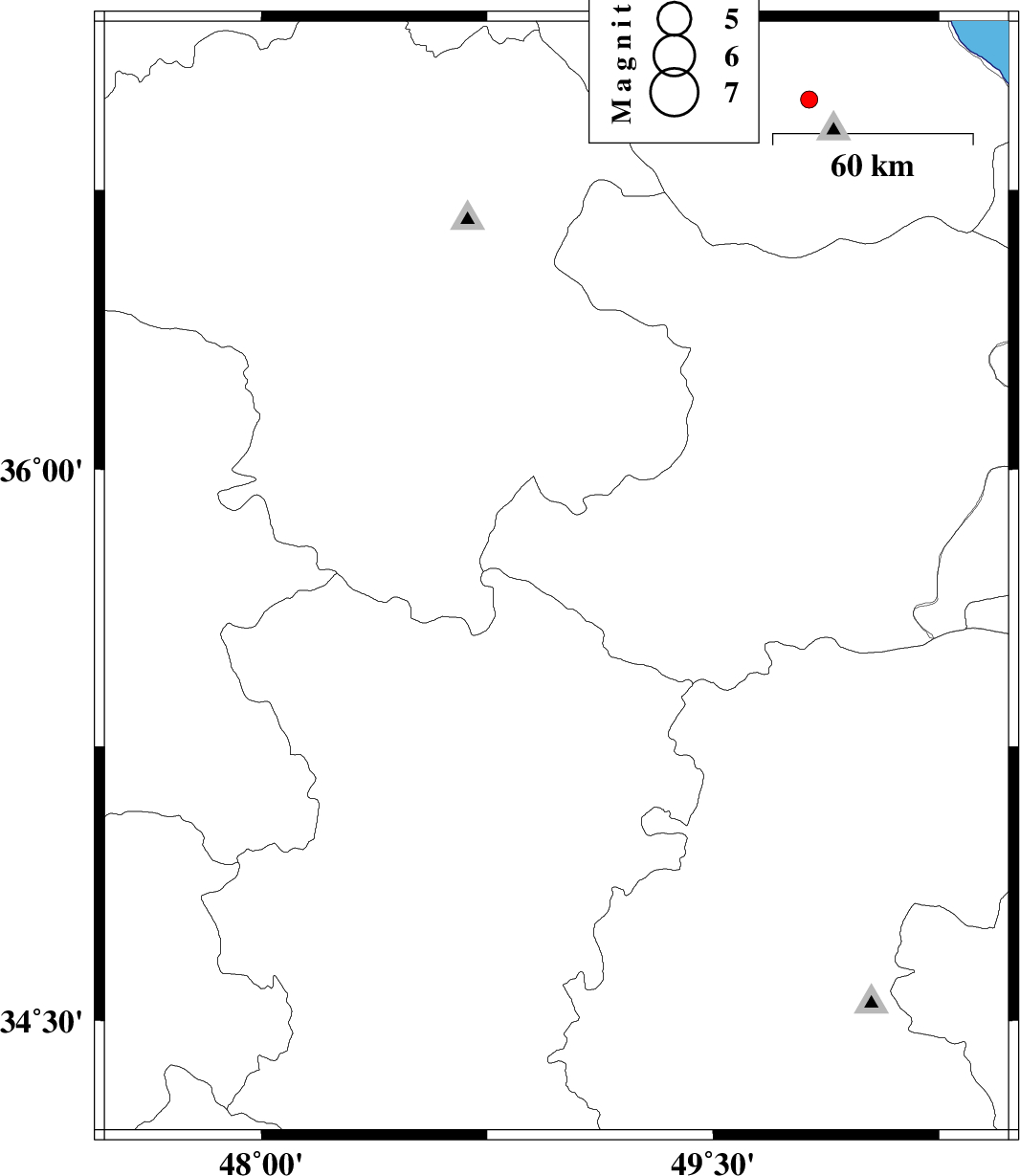 | 2013/04/29 | 05:56:04.8 | 10:26:04.8 | 35.7 | 48.98 | 14 | ML2.9 | Ghazvin Province, 36 km North of Razan | ||