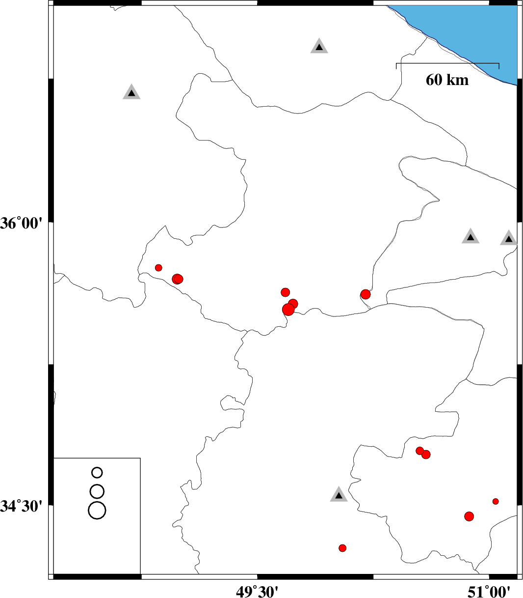 | 2013/05/01 | 02:12:30.5 | 06:42:30.5 | 35.63 | 49.68 | 14 | ML2.6 | Ghazvin Province, 49 km South of Takestan | ||