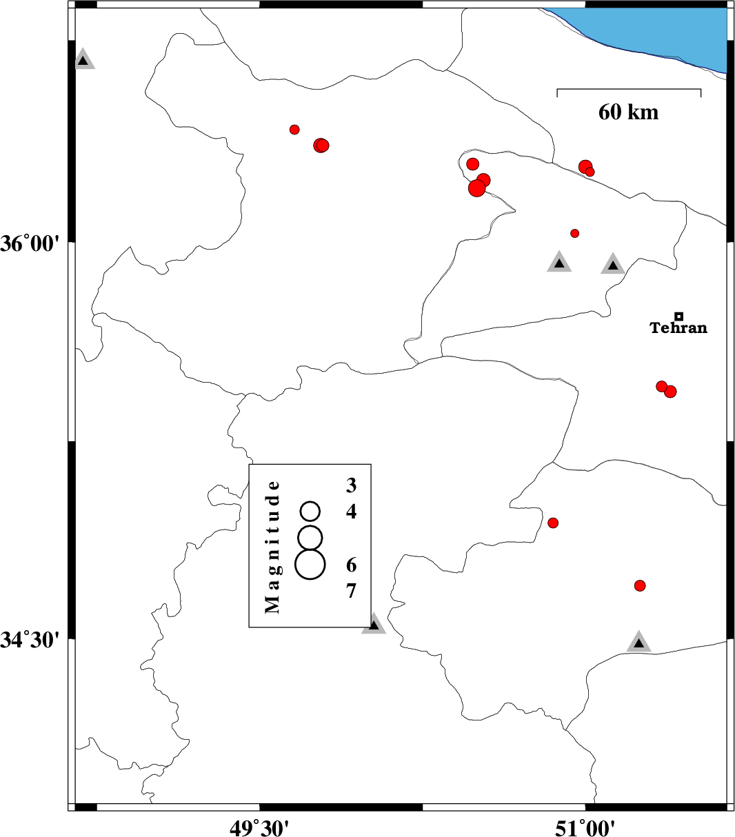 | 2013/04/06 | 20:07:58.1 | 00:37:58.1 | 36.16 | 51.37 | 18 | ML1.9 | Mazandaran Province, 41 km North of Tajrish | ||