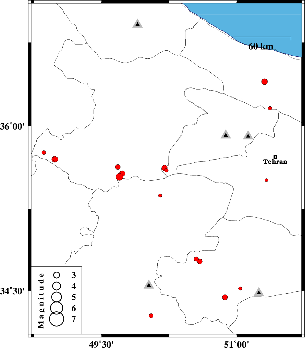 | 2013/04/06 | 20:07:58.1 | 00:37:58.1 | 36.16 | 51.37 | 18 | ML1.9 | Mazandaran Province, 41 km North of Tajrish | ||