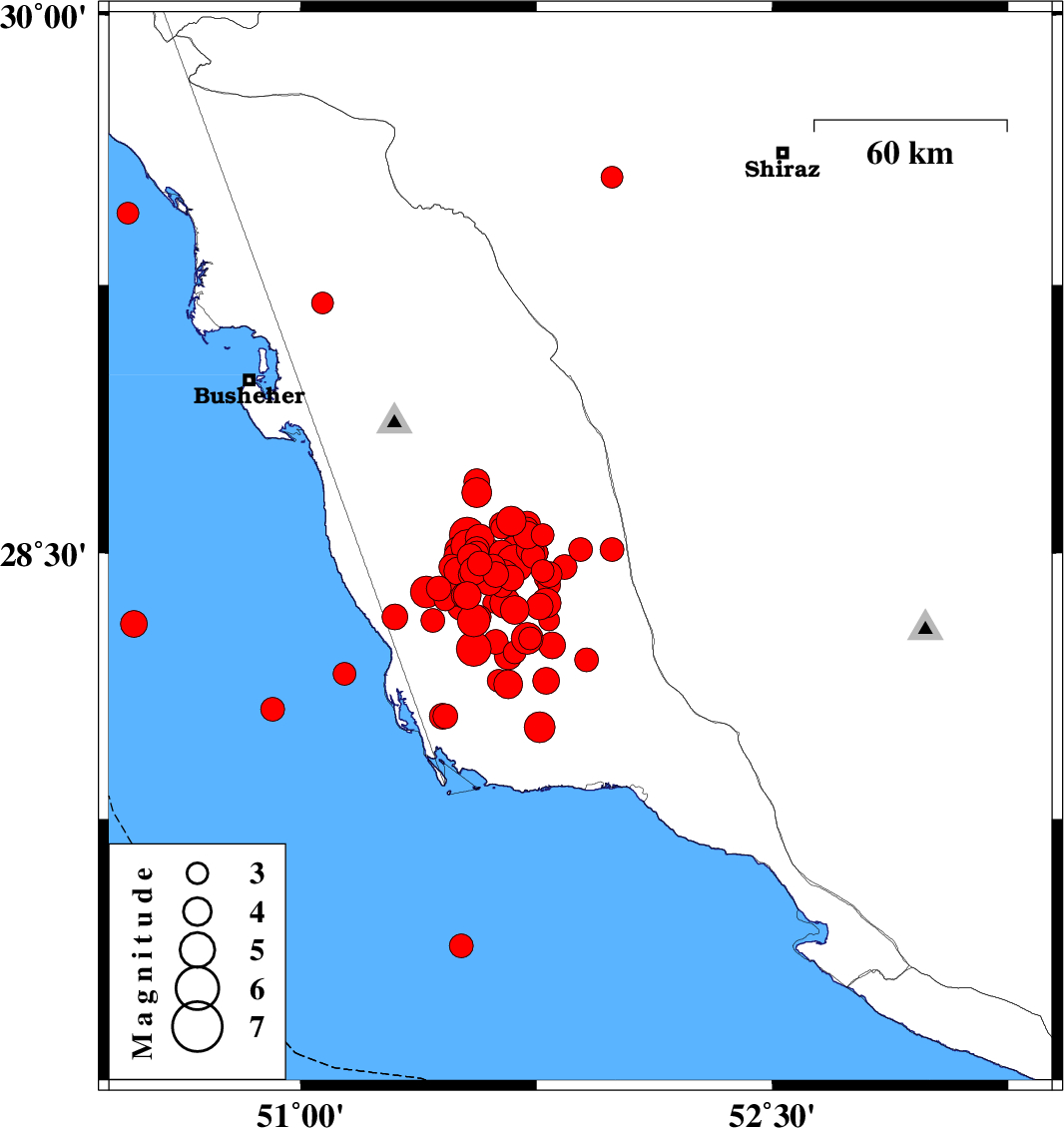 2013/04/10 04:58:02.3 09:28:02.3 28.3151.7920 ML3 Bushehr Province, 55 km South-East of Khormog