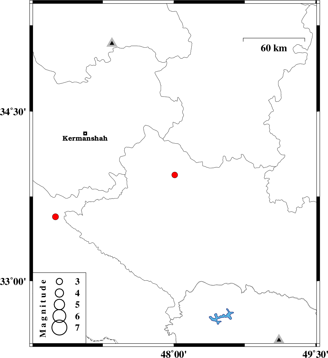 | 2013/05/03 | 08:57:36.6 | 13:27:36.6 | 33.57 | 46.75 | 14 | ML3 | Ilam Province, 30 km East of Ilam |