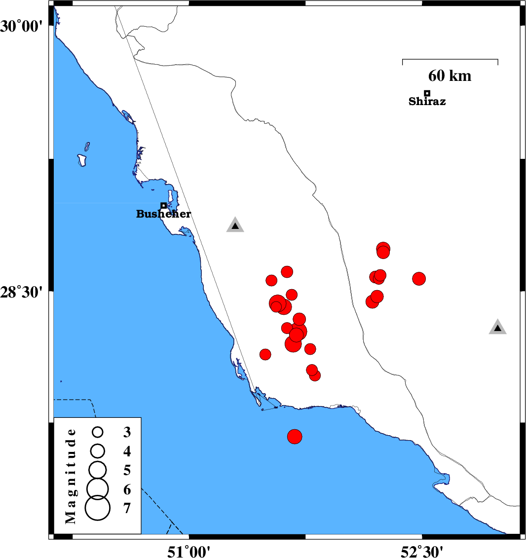 2013/04/29 11:05:06.0 15:35:06.0 28.5651.5333 ML3.2 Bushehr Province, 19 km East of Khormog