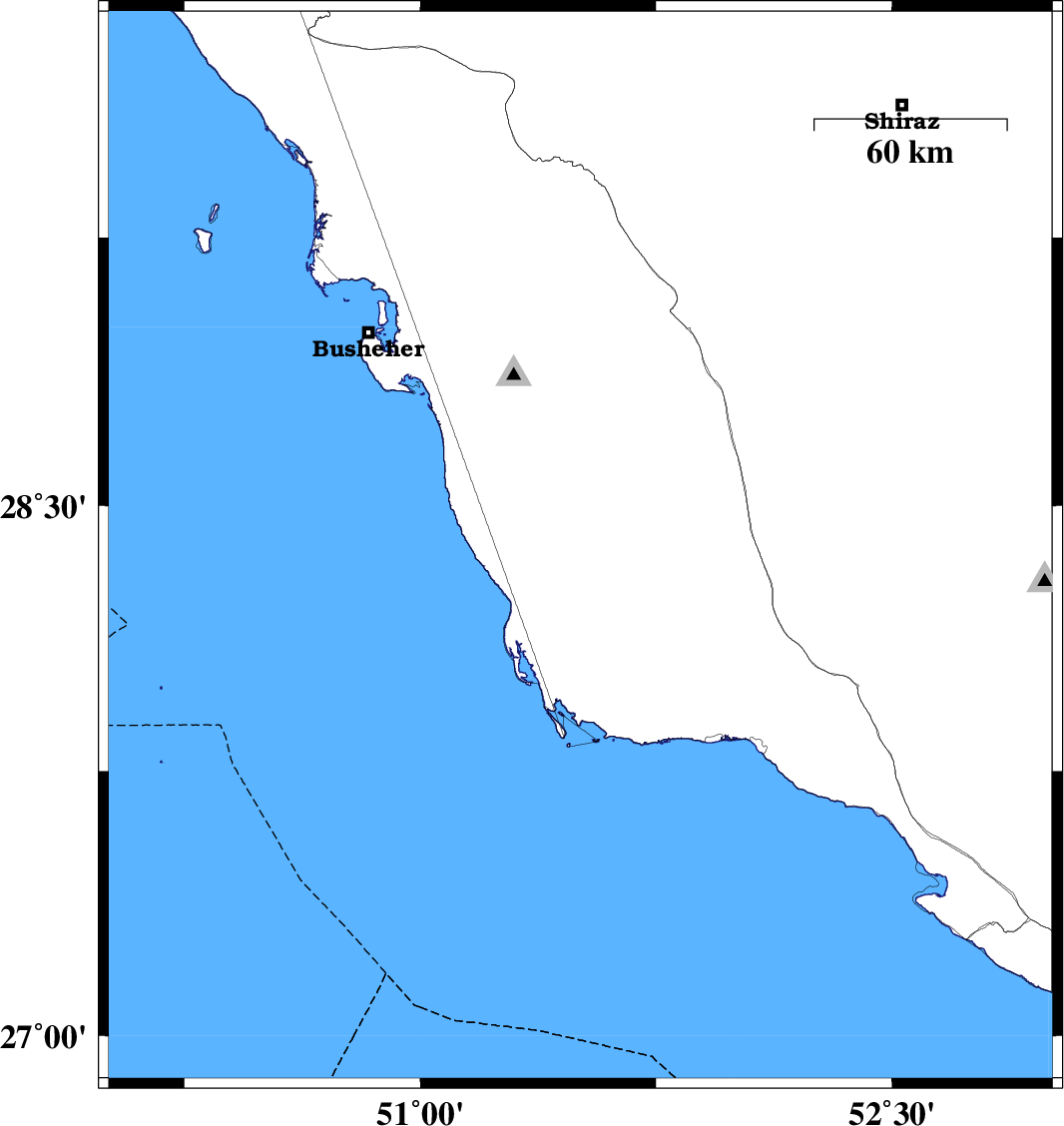 | 2013/04/27 | 04:05:21.4 | 08:35:21.4 | 28.44 | 51.69 | 9 | ML4 | Bushehr Province, 39 km South-East of Khormog | ||