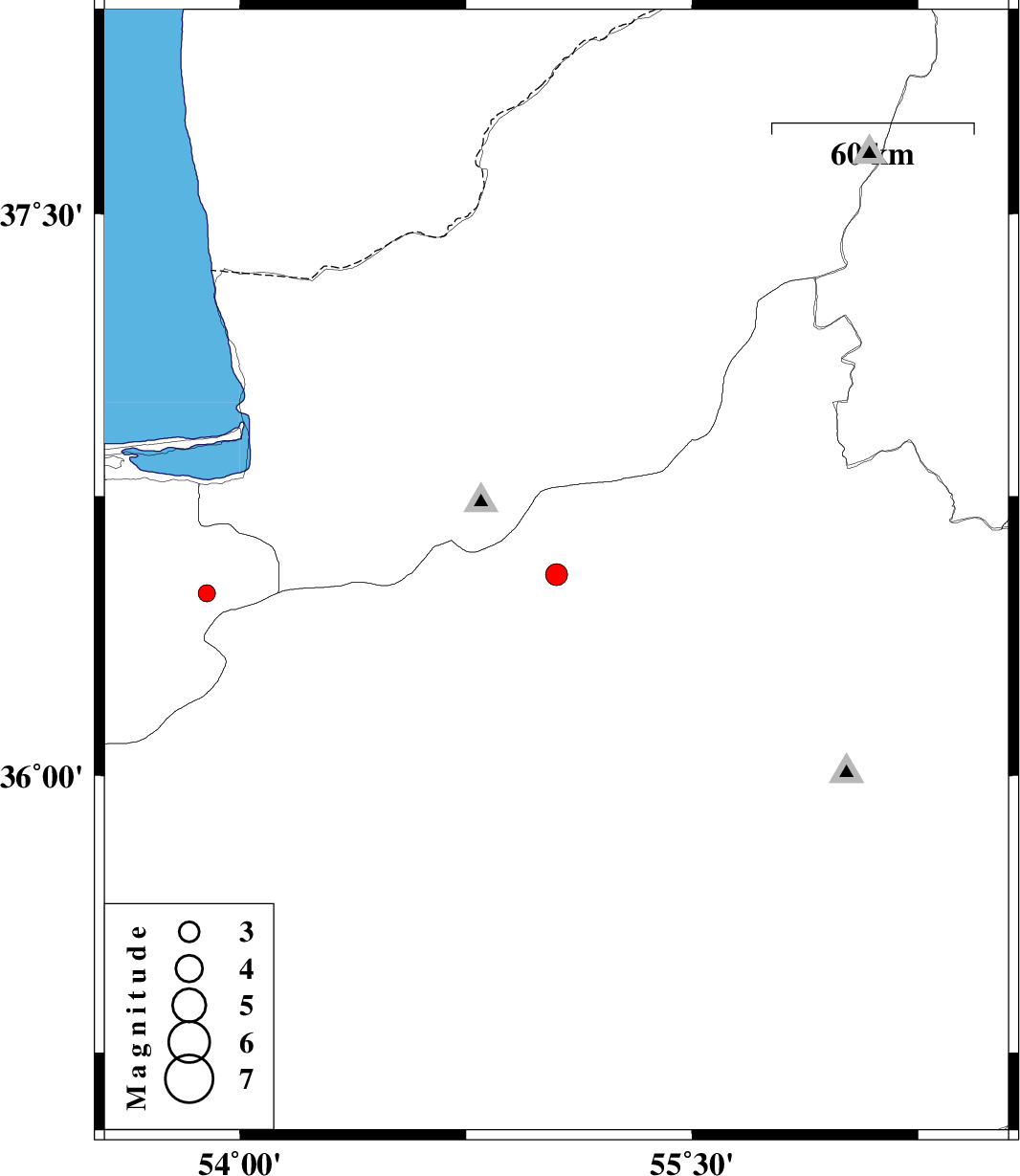 | 2013/05/09 | 21:10:06.3 | 01:40:06.3 | 36.54 | 55.05 | 14 | ML3.2 | Semnan Province, 15 km North of Shahrud | ||
