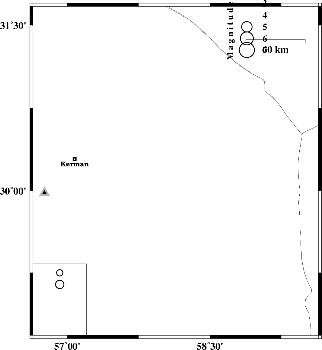 | 2013/05/10 | 05:23:35.0 | 09:53:35.0 | 30.17 | 58.14 | 18 | ML3.2 | Kerman Province, 103 km South-East of Kerman |