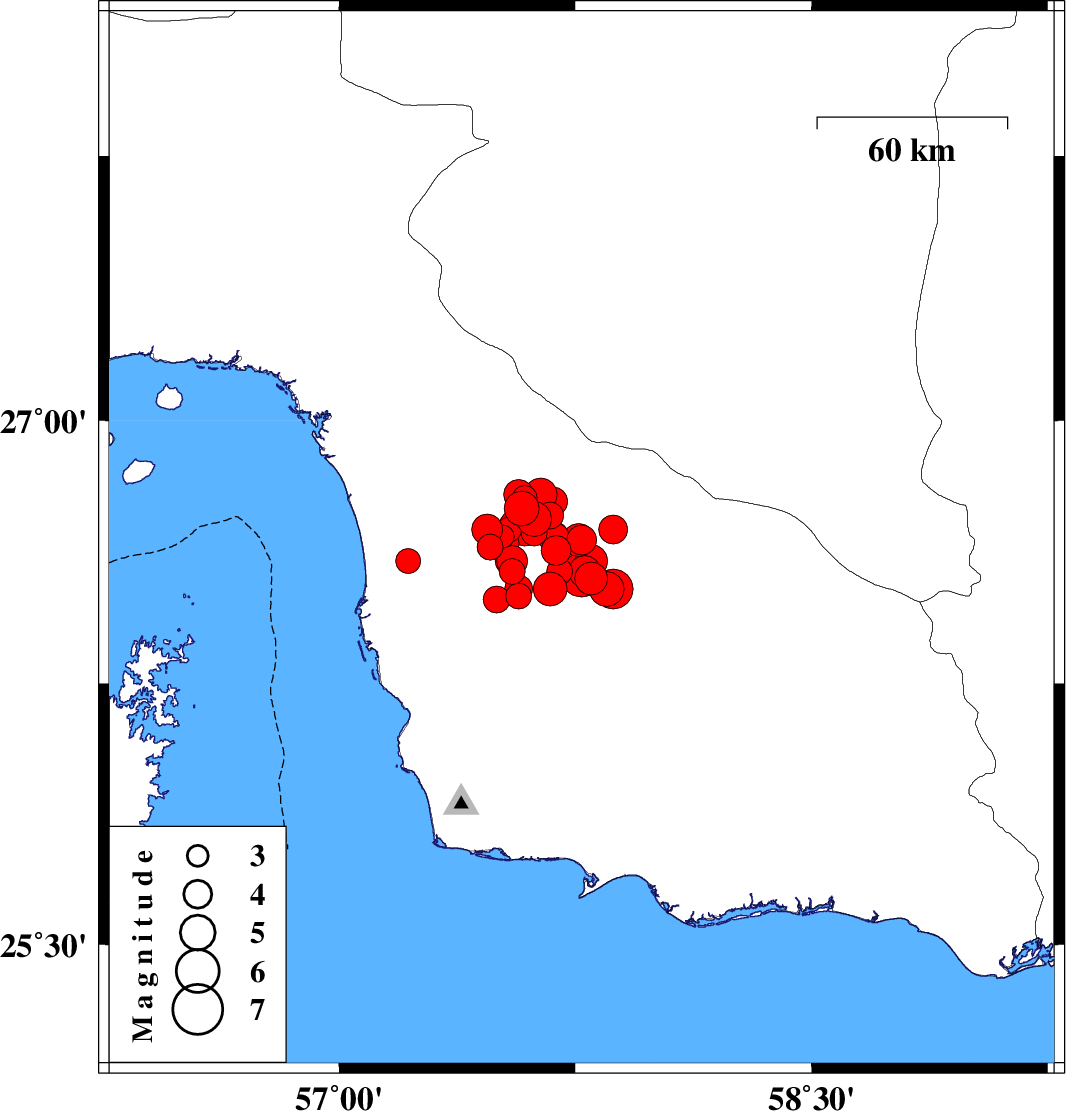 2013/05/11 02:49:34.5 07:19:34.5 26.6957.5915 ML4.7 Hormozgan Province, 80 km South of Manujan