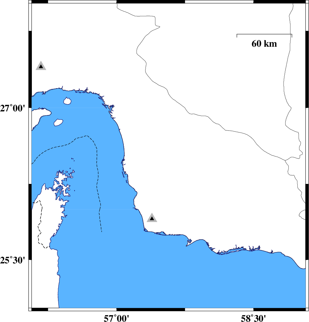 | 2013/05/11 | 02:08:08.5 | 06:38:08.5 | 26.56 | 57.77 | 15 | Ms6.2 | Hormozgan Province, 103 km North of Jask | ||