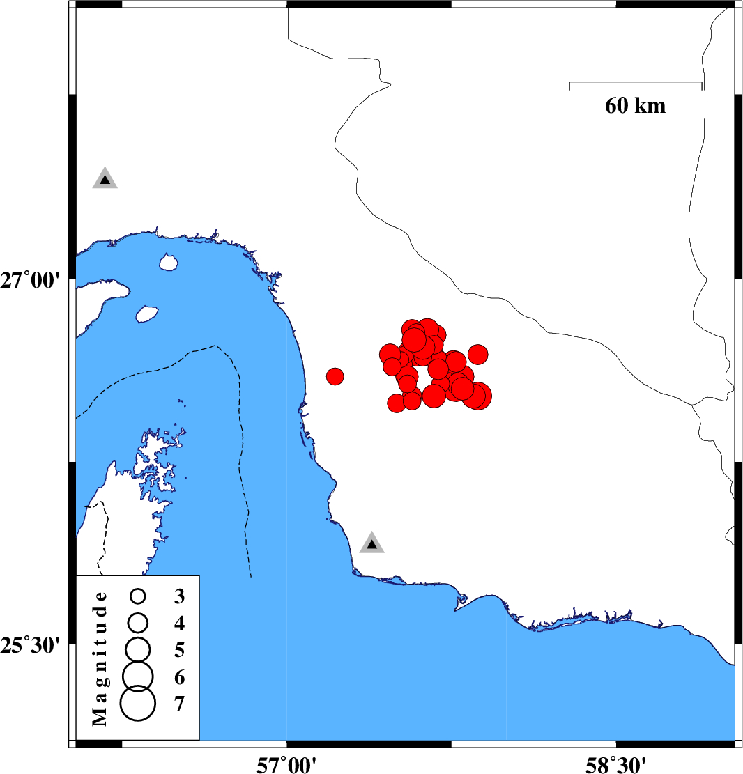 2013/05/11 02:08:08.5 06:38:08.5 26.5657.7715 Ms6.2 Hormozgan Province, 103 km North of Jask