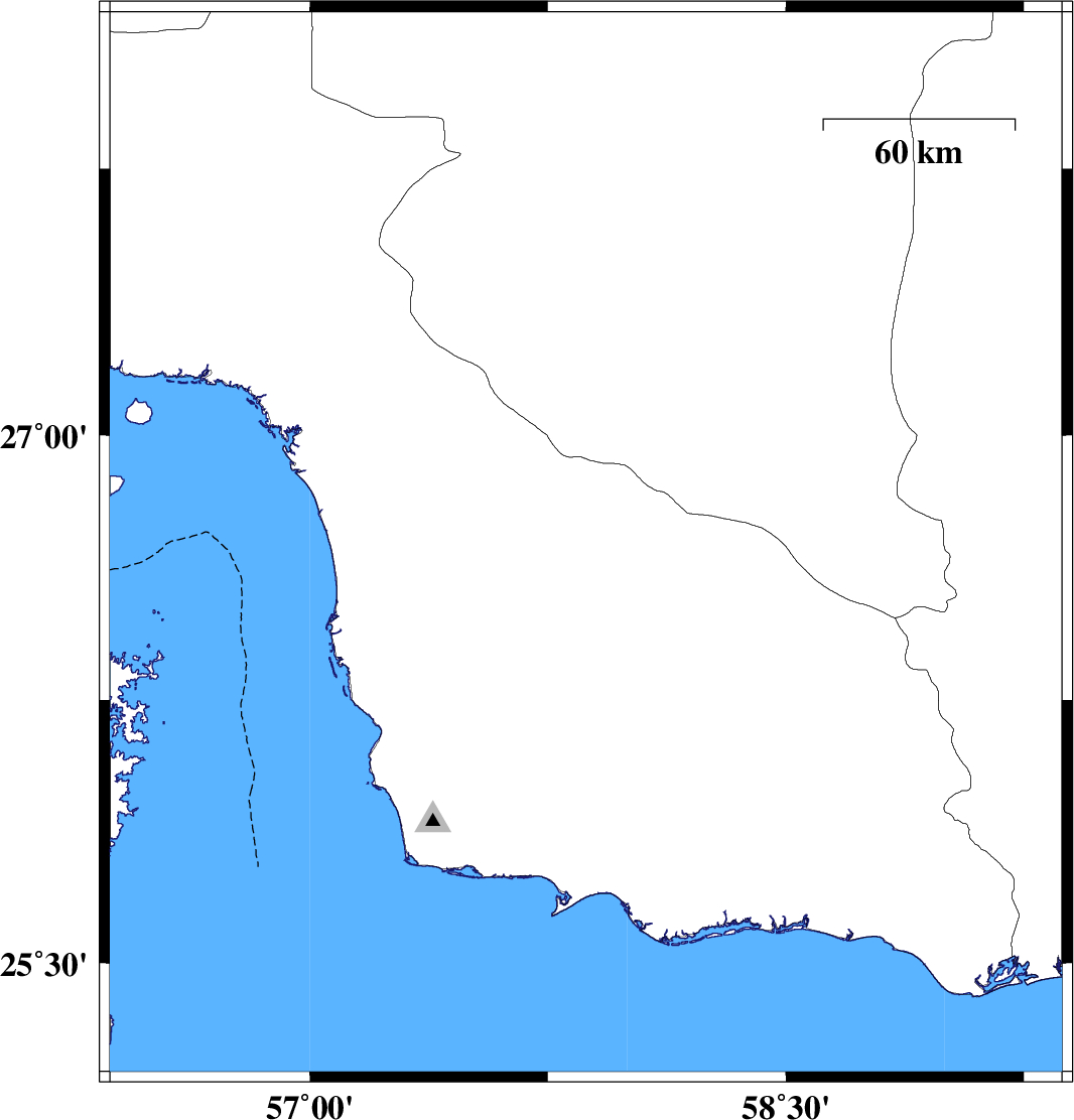 2013/05/11 10:42:22.8 15:12:22.8 26.6557.5315 ML3.7 Hormozgan Province, 85 km South of Manujan