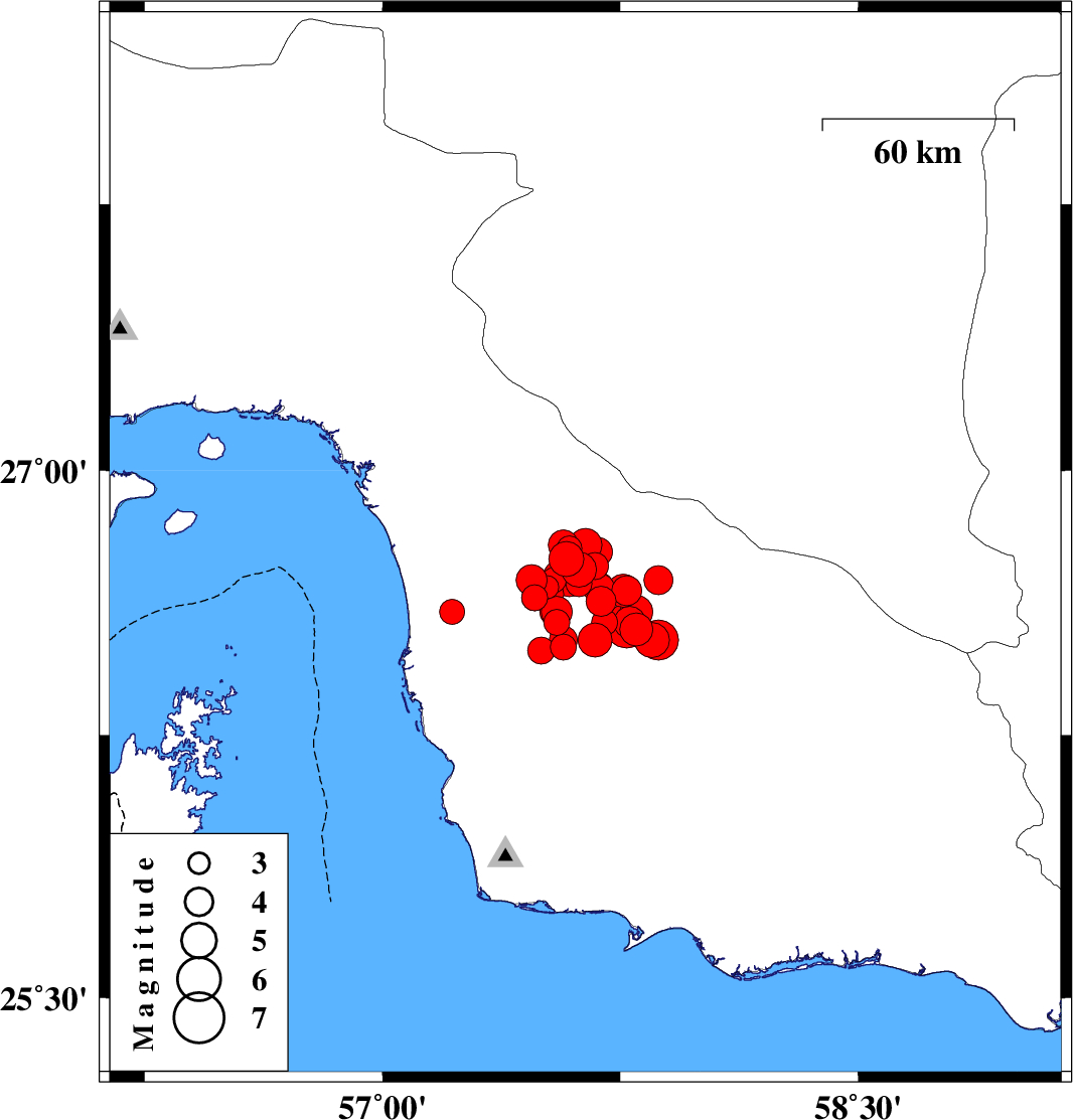 2013/05/11 02:49:34.5 07:19:34.5 26.6957.5915 ML4.7 Hormozgan Province, 80 km South of Manujan