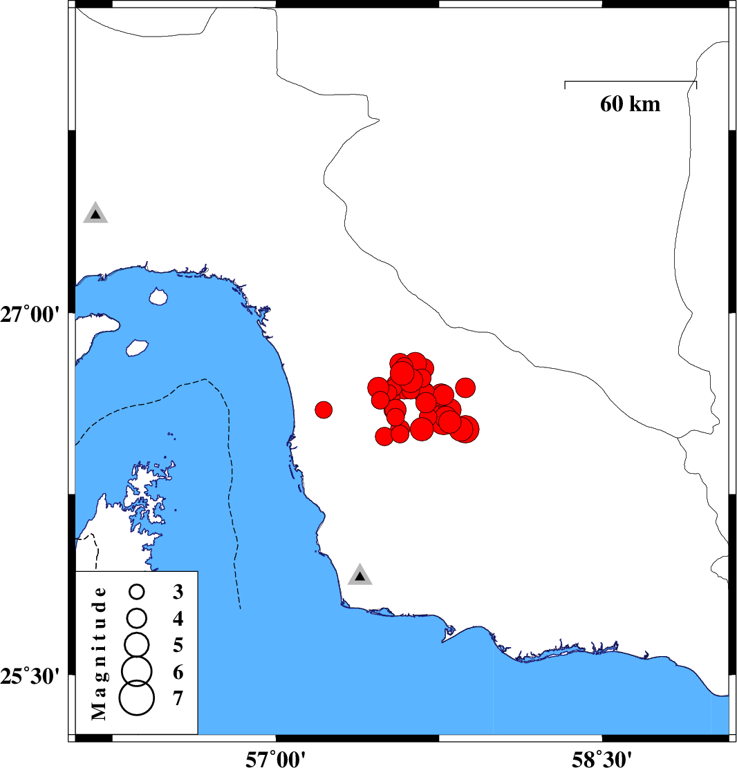 2013/05/11 02:08:08.5 06:38:08.5 26.5657.7715 Ms6.2 Hormozgan Province, 103 km North of Jask
