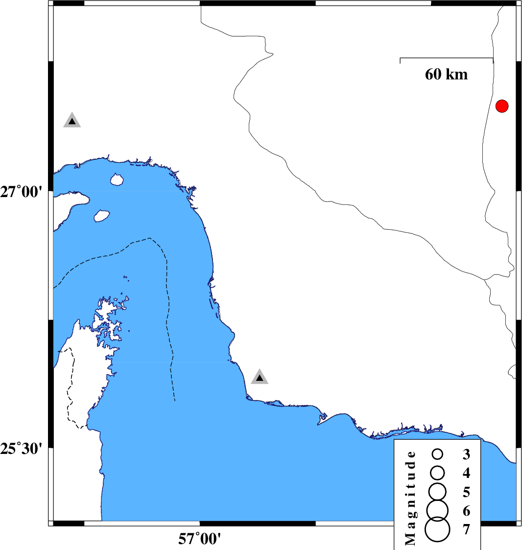 2013/05/11 02:08:08.5 06:38:08.5 26.5657.7715 Ms6.2 Hormozgan Province, 103 km North of Jask