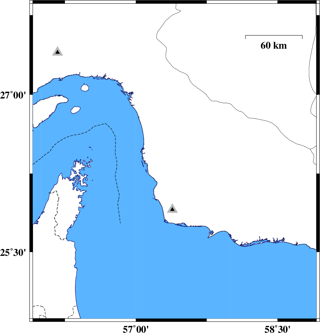 2013/05/11 02:08:08.5 06:38:08.5 26.5657.7715 Ms6.2 Hormozgan Province, 103 km North of Jask