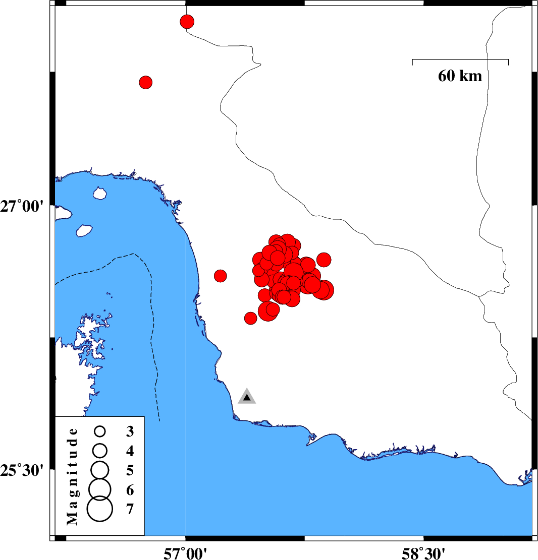 2013/05/11 02:08:08.5 06:38:08.5 26.5657.7715 Ms6.2 Hormozgan Province, 103 km North of Jask