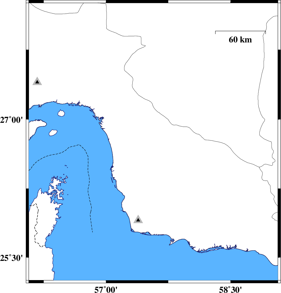 | 2013/05/14 | 04:25:35.1 | 08:55:35.1 | 26.47 | 57.67 | 18 | ML3.5 | Hormozgan Province, 94 km North of Jask | ||