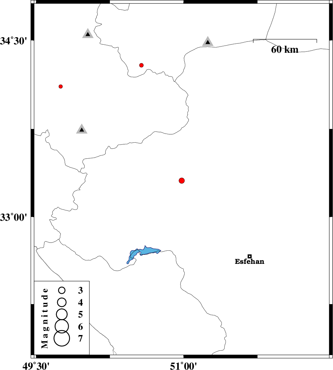 | 2013/05/20 | 09:46:55.1 | 14:16:55.1 | 34.11 | 49.75 | 27 | ML1.7 | Markazi Province, 6 km Arak |