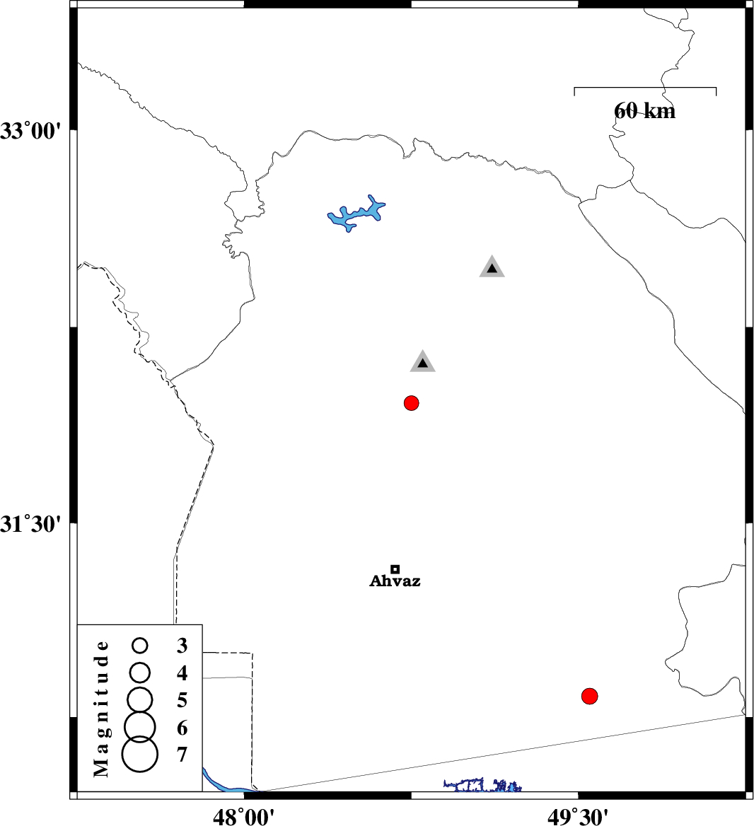 | 2013/05/21 | 17:24:02.4 | 21:54:02.4 | 30.83 | 49.55 | 18 | ML3.2 | Khoozestan Province, 17 km West of Omidiyeh |