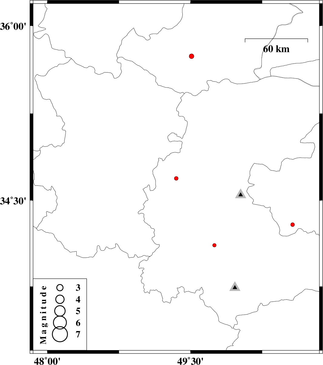 | 2013/05/20 | 09:46:55.1 | 14:16:55.1 | 34.11 | 49.75 | 27 | ML1.7 | Markazi Province, 6 km Arak | ||