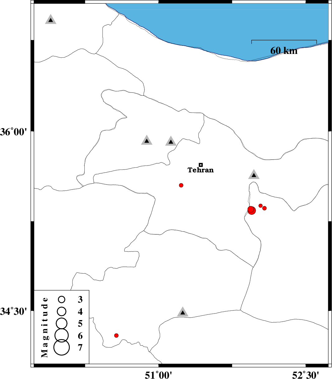 | 2013/05/24 | 01:59:52.5 | 06:29:52.5 | 35.36 | 52.08 | 24 | ML1.9 | Semnan Province, 39 km South of Damavand | ||