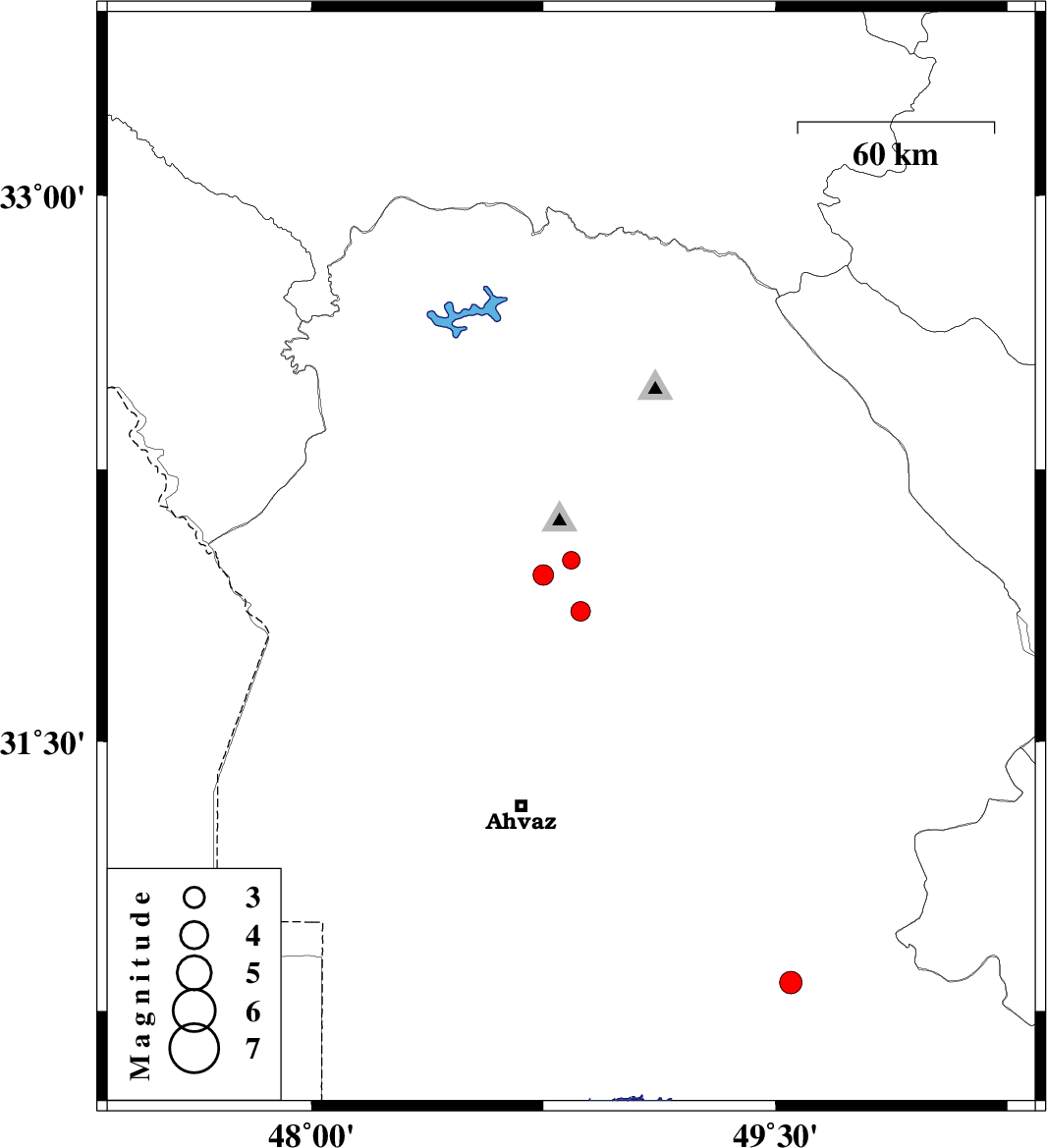 | 2013/05/21 | 17:24:02.4 | 21:54:02.4 | 30.83 | 49.55 | 18 | ML3.2 | Khoozestan Province, 17 km West of Omidiyeh |
