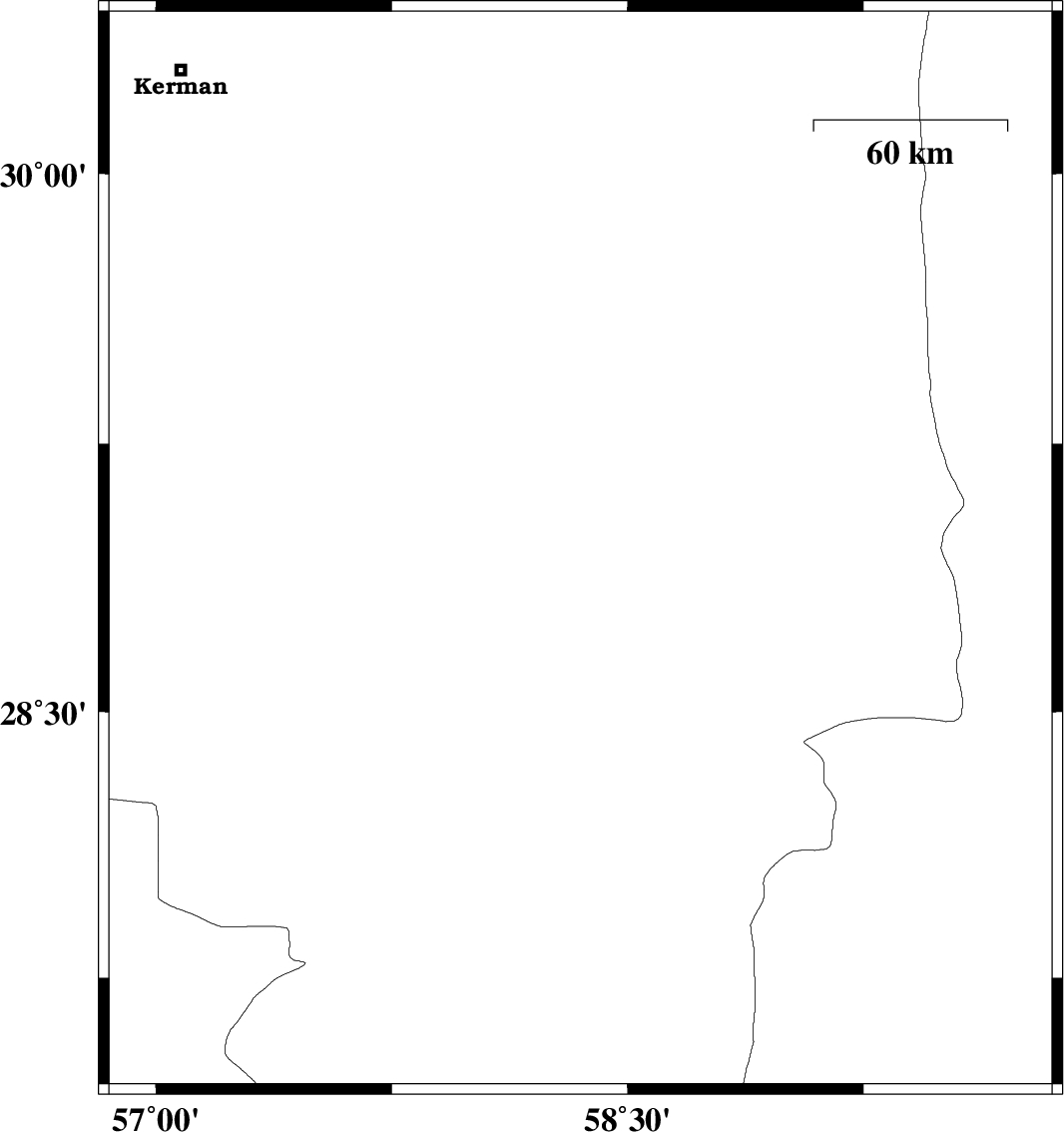 | 2013/05/13 | 20:36:59.5 | 01:06:59.5 | 30.39 | 57.68 | 15 | ML3.2 | Kerman Province, 59 km East of Kerman | ||