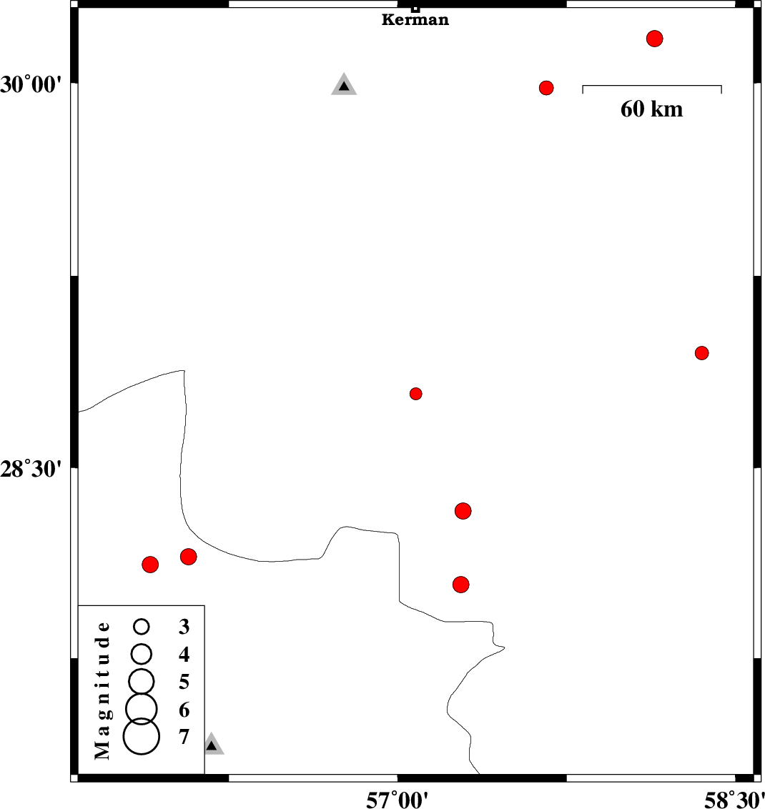 | 2013/05/10 | 05:23:35.0 | 09:53:35.0 | 30.17 | 58.14 | 18 | ML3.2 | Kerman Province, 103 km South-East of Kerman |
