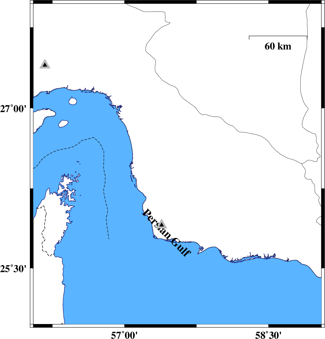 | 2013/06/12 | 06:35:05.7 | 11:05:05.7 | 26.29 | 57.1 | 15 | ML3.2 | Oman Sea, 96 km South of Minab | ||