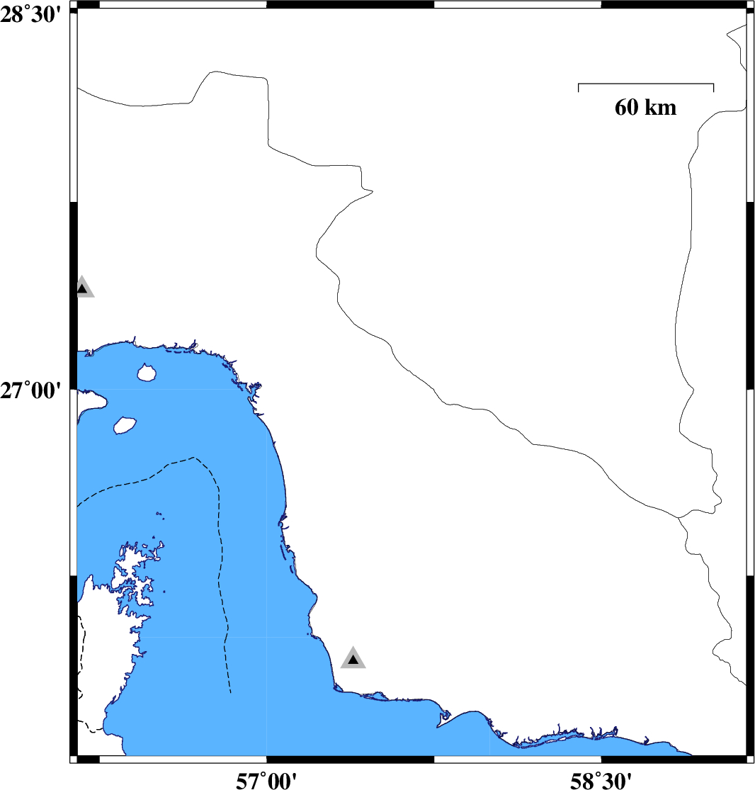 | 2013/06/12 | 06:35:05.7 | 11:05:05.7 | 26.29 | 57.1 | 15 | ML3.2 | Oman Sea, 96 km South of Minab | ||