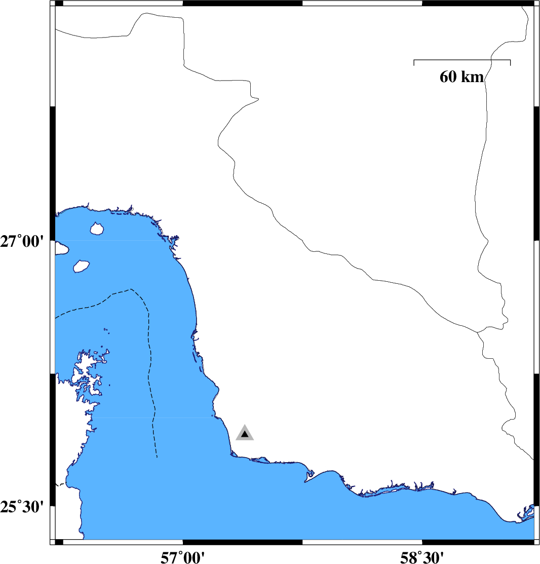 | 2013/06/12 | 06:35:05.7 | 11:05:05.7 | 26.29 | 57.1 | 15 | ML3.2 | Oman Sea, 96 km South of Minab |