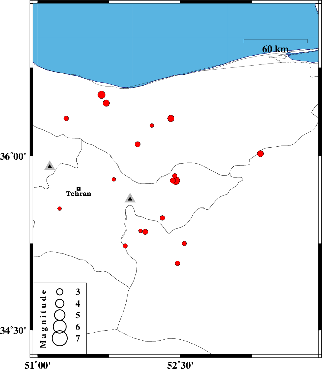 | 2013/06/02 | 12:00:50.1 | 16:30:50.1 | 35.23 | 51.92 | 31 | ML2.1 | Semnan Province, 25 km East of Varamin | ||