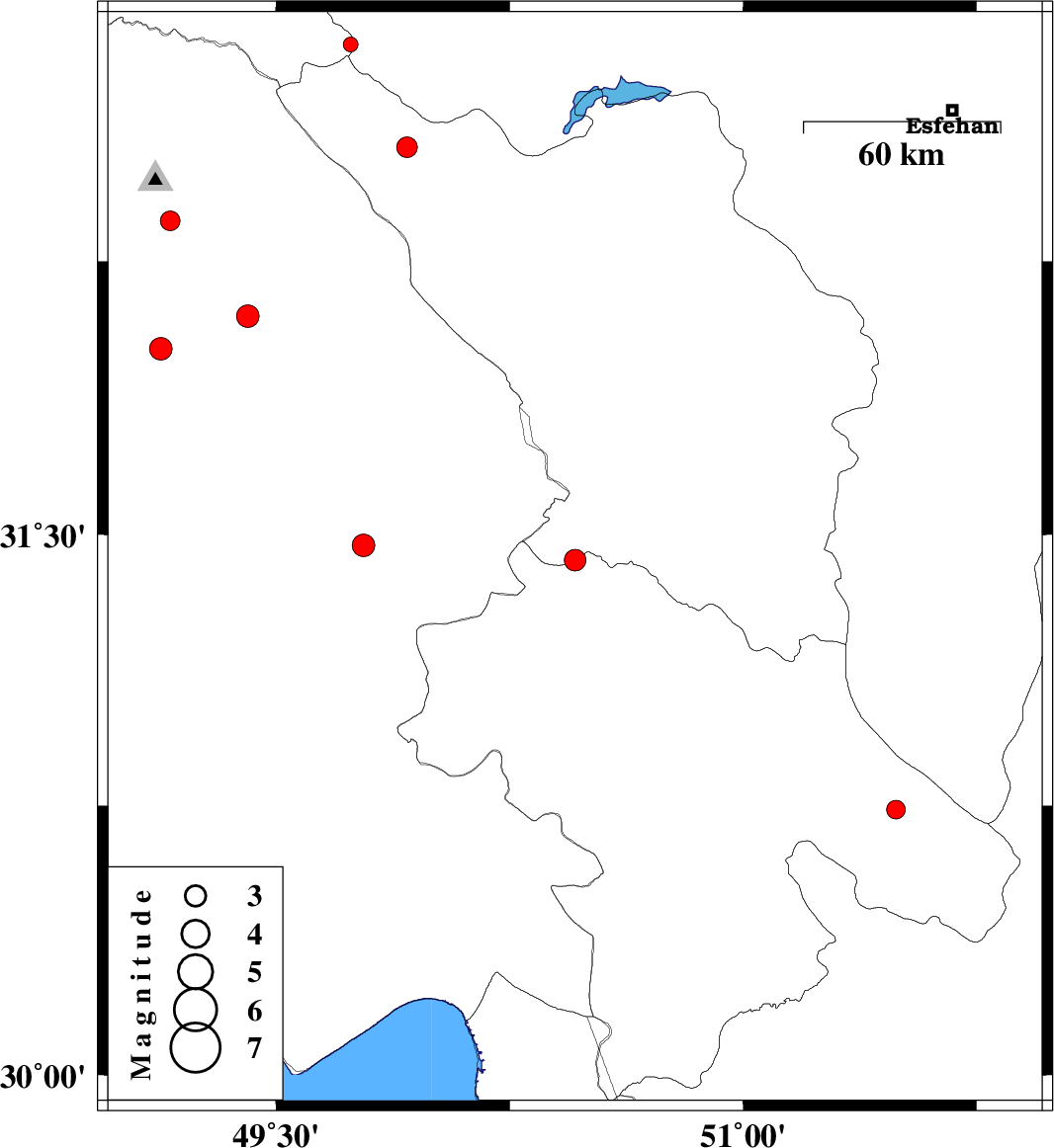 | 2013/06/23 | 06:37:29.5 | 11:07:29.5 | 31.43 | 50.46 | 16 | ML3.1 | Chaharmahal Bakhtiari Province, 34 km West of Lordegan | ||