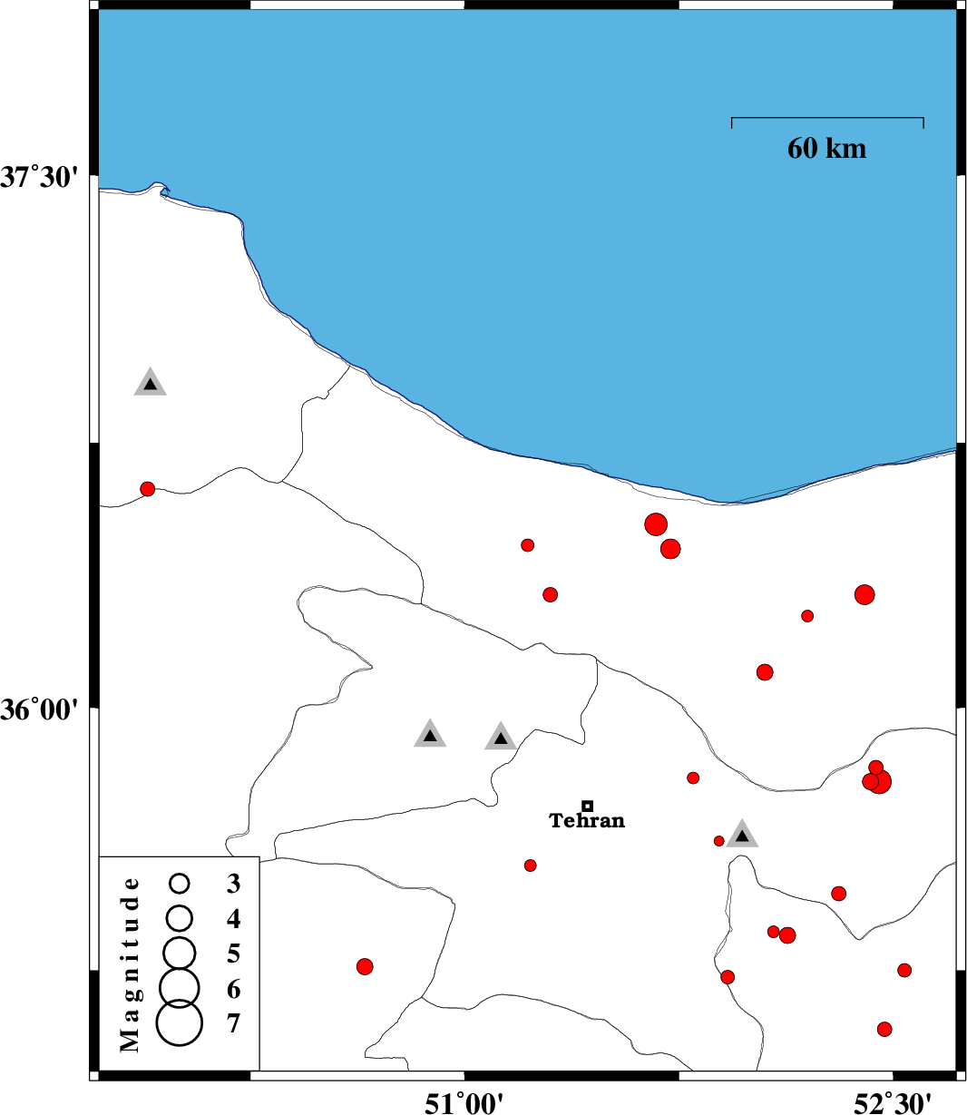 | 2013/06/23 | 22:31:11.9 | 03:01:11.9 | 36.46 | 51.22 | 14 | ML2 | Mazandaran Province, 29 km South-West of Chalus | ||