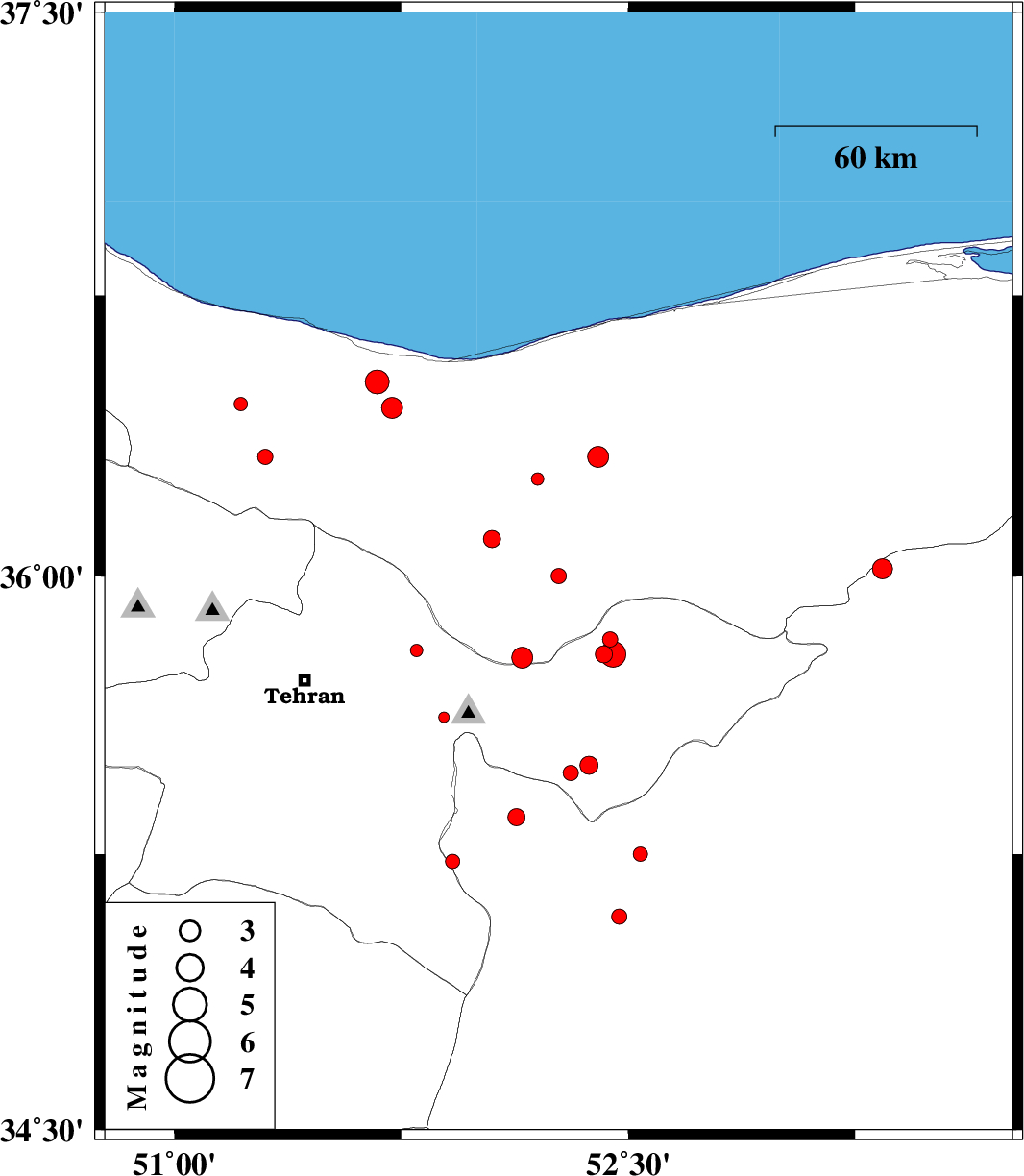 | 2013/06/02 | 12:00:50.1 | 16:30:50.1 | 35.23 | 51.92 | 31 | ML2.1 | Semnan Province, 25 km East of Varamin | ||