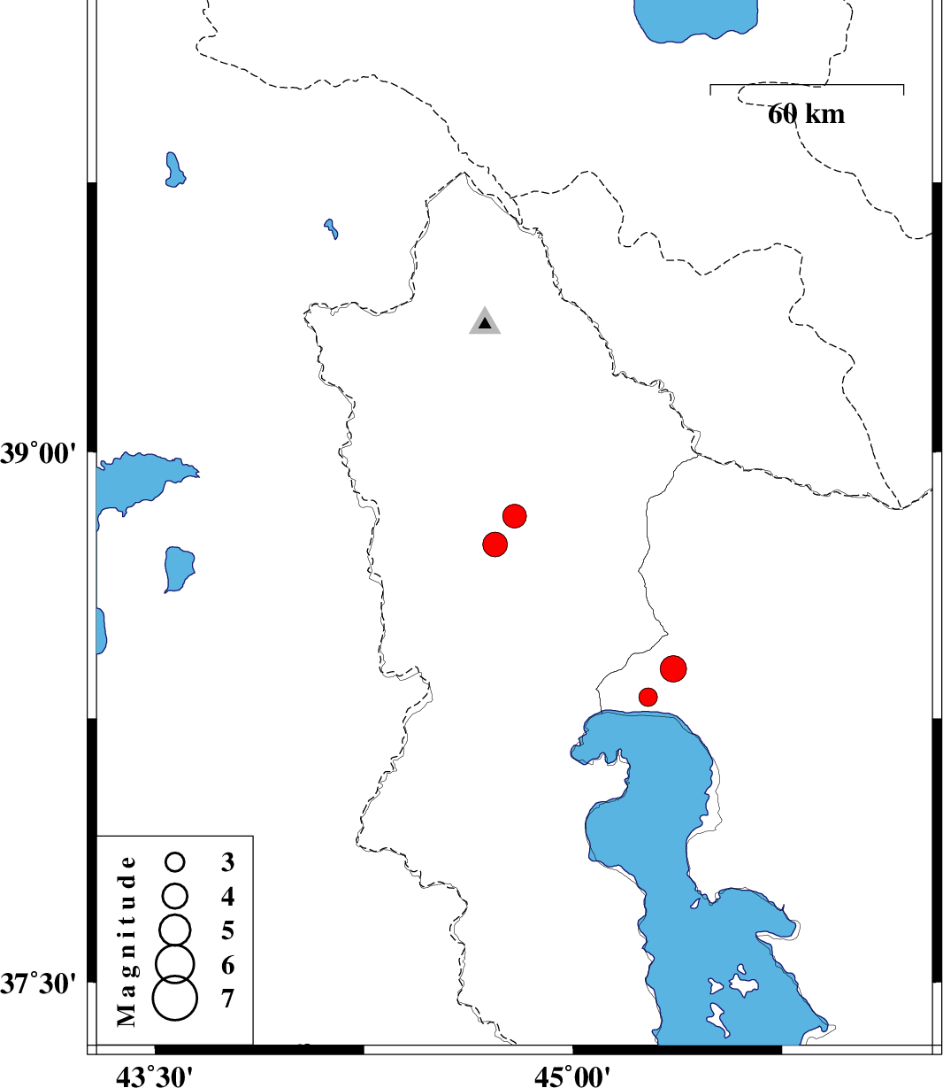| 2013/06/28 | 05:13:08.4 | 09:43:08.4 | 38.39 | 45.36 | 14 | ML4.2 | Azarbaijan Sharghi Province, 36 km West of Marand | ||