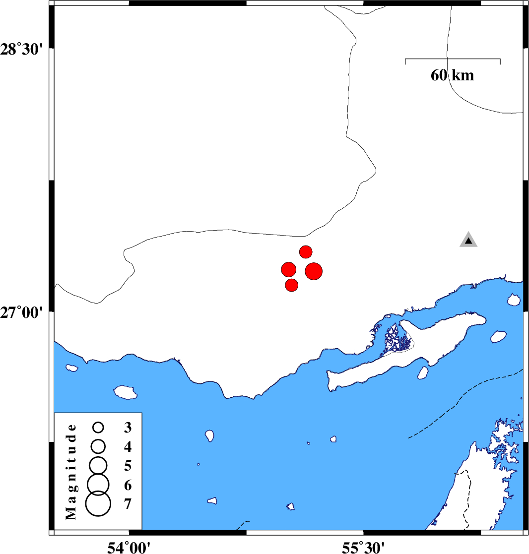 2013/07/02 16:04:42.4 20:34:42.4 27.1555.0414 ML3.6 Hormozgan Province, 67 km East of Bastak