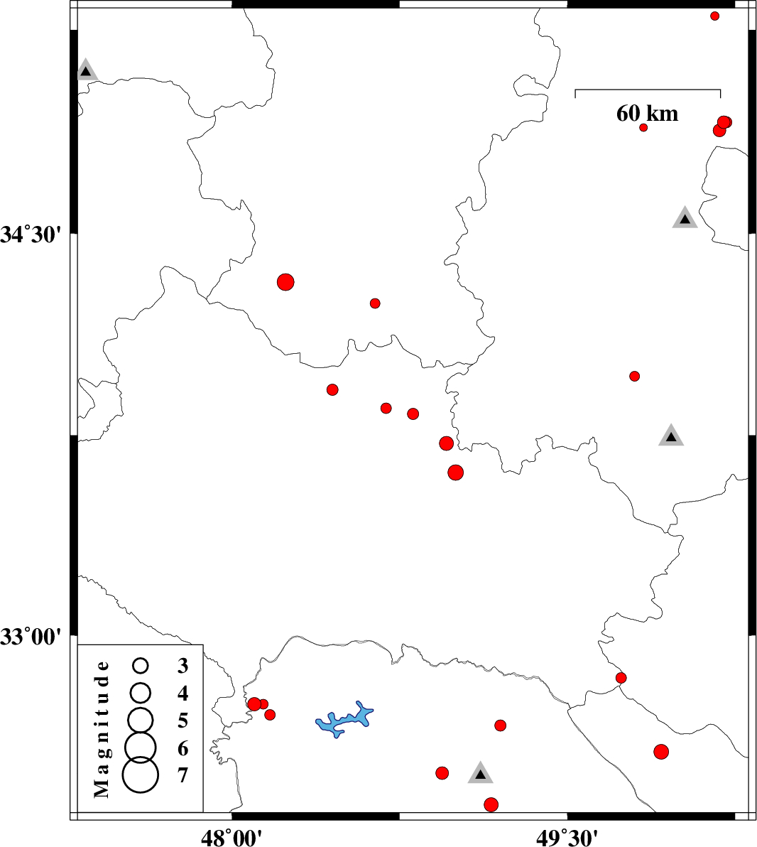 | 2013/06/23 | 09:30:14.1 | 14:00:14.1 | 33.97 | 49.8 | 24 | ML2 | Markazi Province, 17 km South-East of Arak | ||