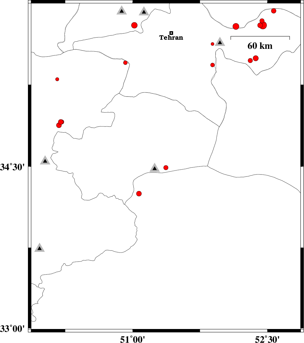 | 2013/06/29 | 17:14:27.9 | 21:44:27.9 | 35.45 | 50.92 | 17 | ML2 | Markazi Province, 15 km West of Robatkarim | ||