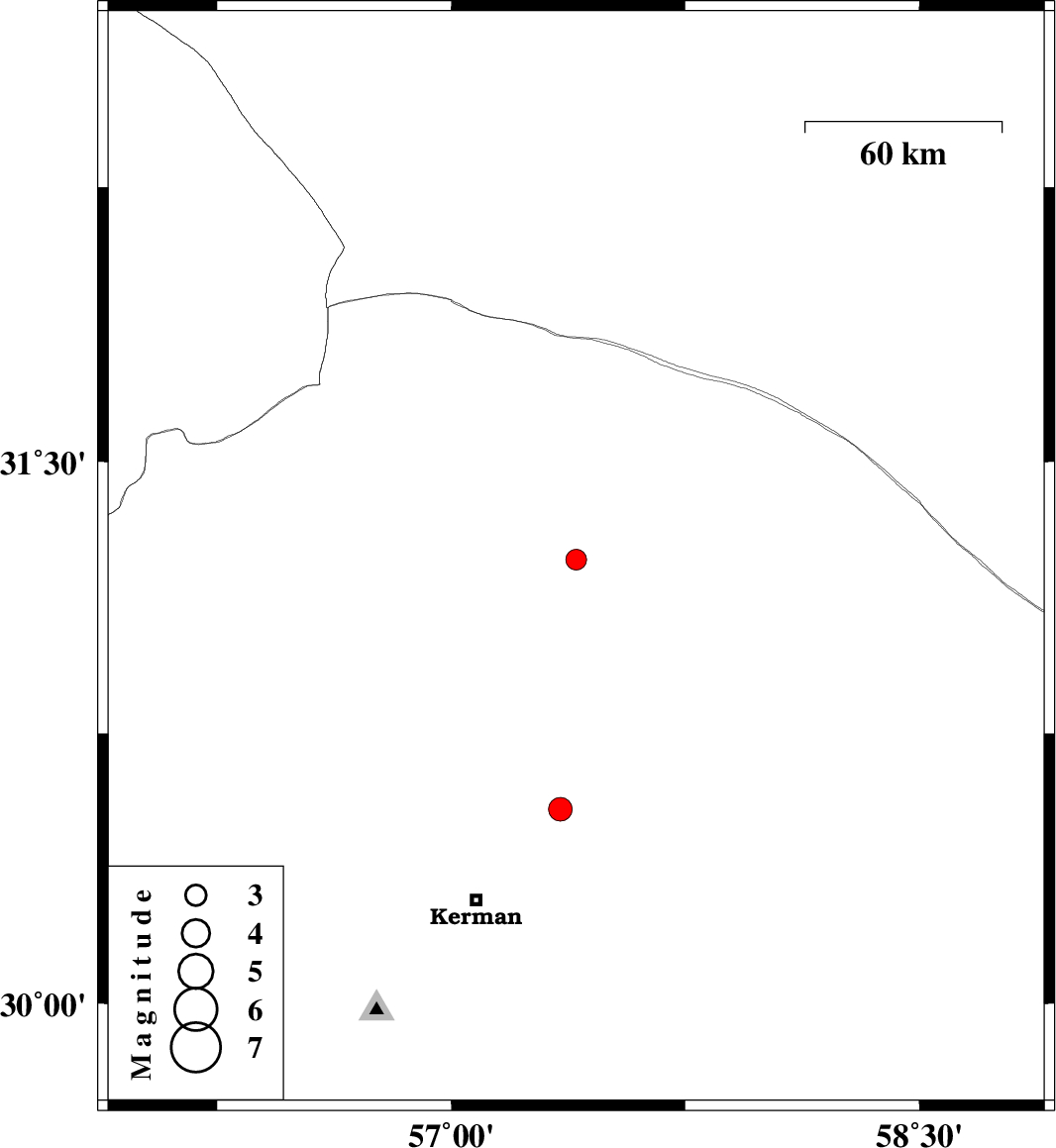 | 2013/07/10 | 23:53:34.8 | 04:23:34.8 | 30.54 | 57.35 | 14 | ML3.4 | Kerman Province, 39 km North-East of Kerman |